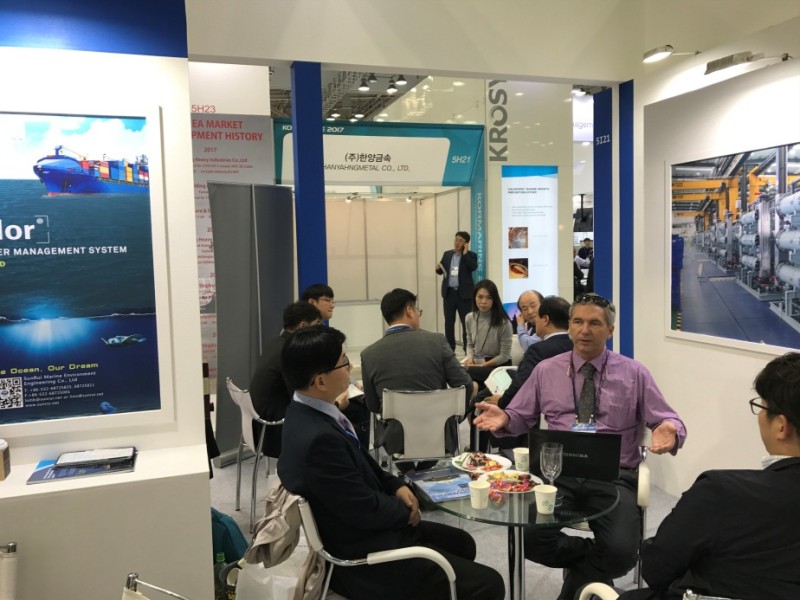 10月24日,第20屆韓國釜山海事展(KORMARINE 2017)隆重開幕,青島雙瑞公司攜BalClor?壓載水管理系統樣機首次在該展會亮相,受到廣大船東、船廠的矚目和好評。