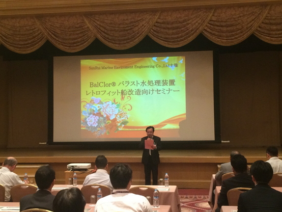 10月20日,青島雙瑞海洋環境工程股份有限公司(簡稱青島雙瑞)在日本今治國際大酒店舉行主題為“營運船壓載水管理系統改造整體解決方案”的產品推介會,包括日本三大航運公司日本郵船、商船三井、川崎汽船和今治地區大型船東正榮海運、東予產業等在內的40余家船東公司代表以及今治周邊的修船廠、設計公司及NK船級社等企業或組織的代表共80余人參會。